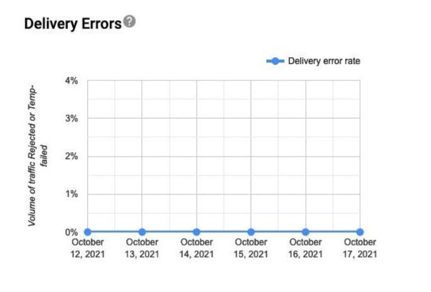 Shows volume of spam complaints (abuse). Only emails authenticated by DKIM are eligible for spam complaint calculation. You should keep spam complaint rate below 0.1%.