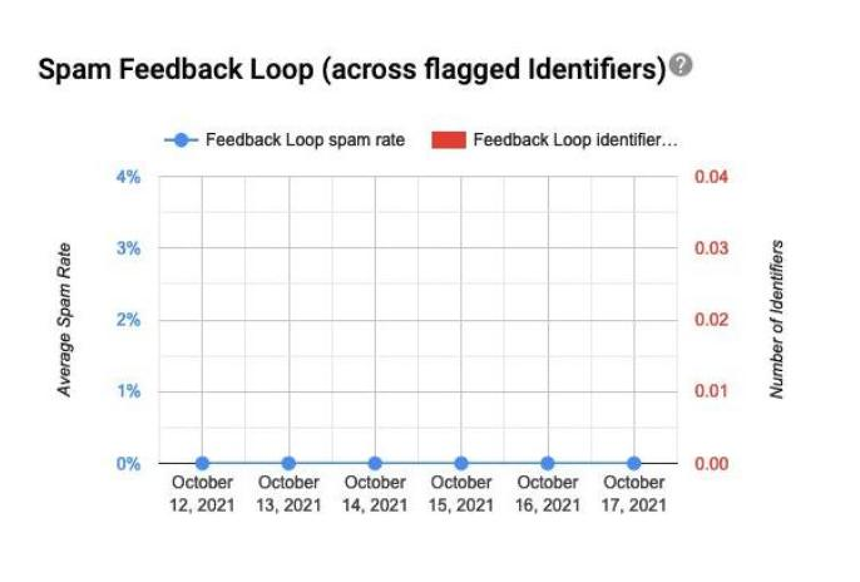 This dashboard is available after you set up the Gmail Spam Feedback Loop (FBL). To view a table with the identifiers flagged by FBL and their corresponding spam rates, click any data point on the graph.