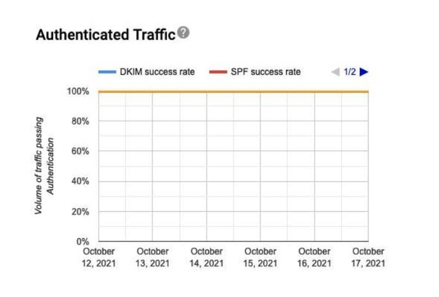 Shows traffic that passed SPF, DKIM & DMARC, over all received traffic that attempted authentification.