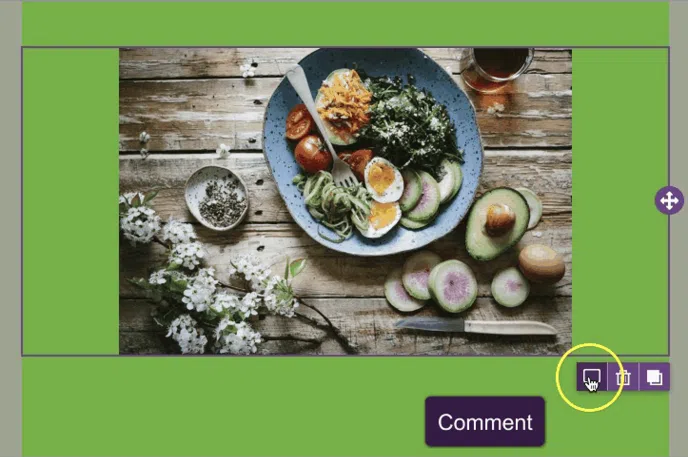 - Show you three icons on the stage, which allow you to remove, clone or comment on that block of content.