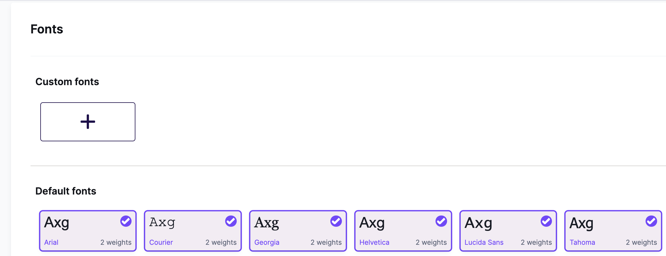 Log into your Tenon account and navigate to Settings > Styles. Scroll down until you see the Fonts section. You can add a custom font by clicking the button that displays with a + icon.