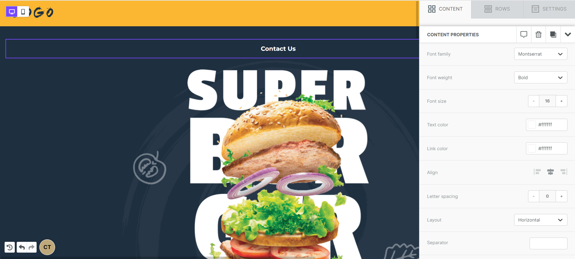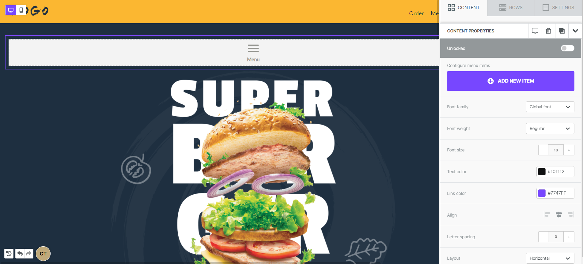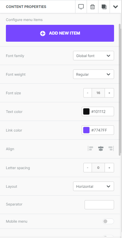 If you've been following along, you may have noticed that we skipped over an item available under the content properties: Mobile menus. This allows you to generate a mobile-optimized menu for your design without duplicating any content and using the hide on mobile/desktop option (though, that's still available if you prefer this!) Instead of working hard to create two versions of your menu, why not let the Tenon builder design it for you!